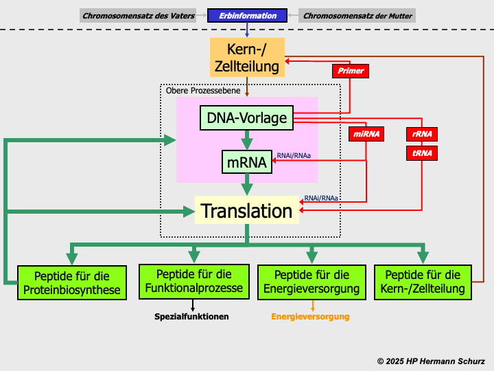 Ausnahmen hiervon sind nur die Primer-RNA, deren Aktivitäten für die Kernteilung auf der unteren Prozessebene stattfinden.