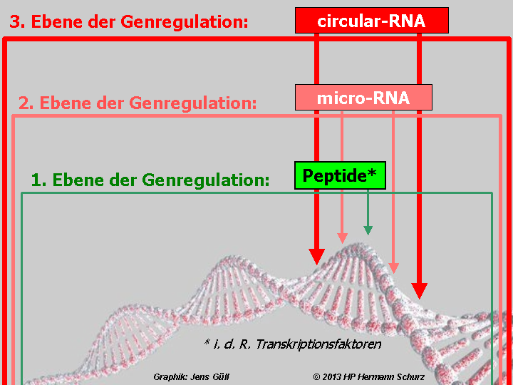 Durch die Differenzierung zwischen den genregulierenen RNA, tRNA und rRNA als zur unteren Prozessebene zugehörigen Substanzen und deren Aktivitäten als zur oberen Prozessebene zugehörig ergibt sich ein weiterer ‑ dritter ‑ Prozesskreislauf. Auch in Abbildung 11 wird das durch die entsprechenden roten Graphikelemente deutlich.